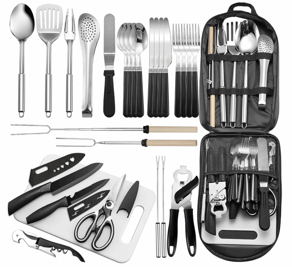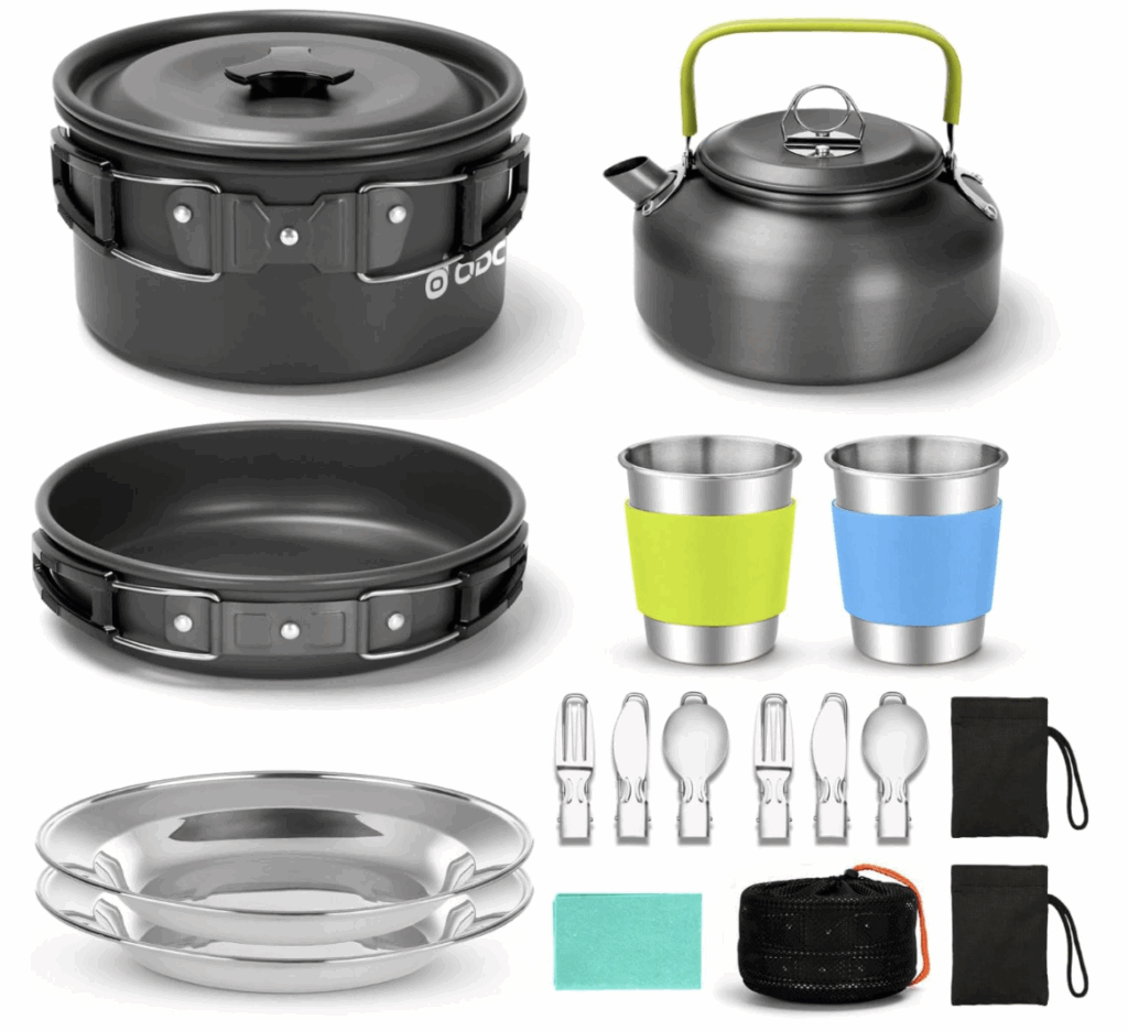 Pack versatile cooking equipment like a camp stove, a pot, a pan, and utensils. Don’t forget essential items like a can opener, cutting board, and sharp knife.