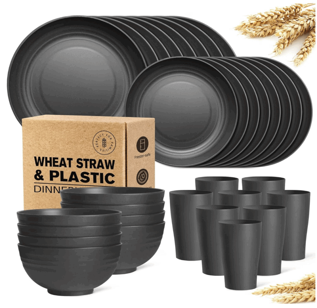 Teivio 32-Piece Kitchen Plastic Wheat Straw Dinnerware Set, Service for 8